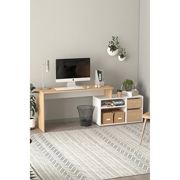 Bofigo Çalışma Masası Fonksiyonel Çalışma Masası Ofis Masası Safir Meşe-beyaz