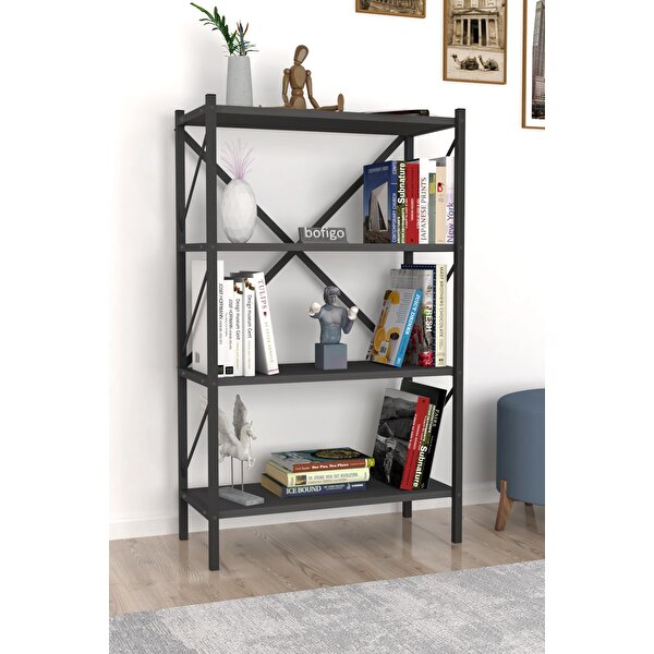Bofigo Dekoratif 4 Raflı Kitaplık Metal Kitaplık Antrasit