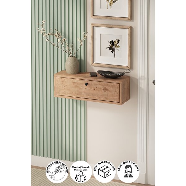 Bofigo Duvara Monte Dresuar 2 Bölmeli Dresuar Kapaklı Konsol 60 Cm Antre Hol Sude Çam