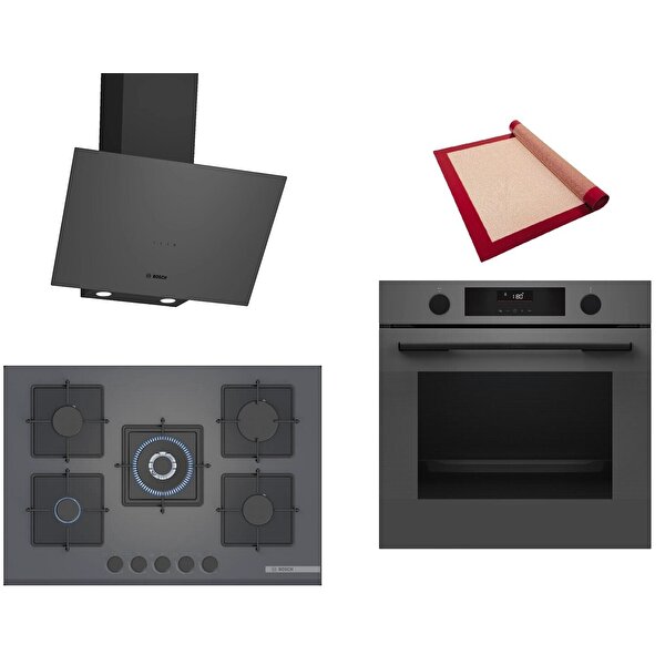Bosch Gri 3 Lü Ankastre Set 390 ( Hua736en0t - Pnq7b9p30o - Dwk64pj70t ) 75cm Wok Bek Ocak - Buhar Destekli - Pişirme Matı Ile