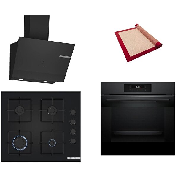 Bosch Siyah 3 Lü Ankastre Set 454 ( Hjg852yt0t - Pop6c6p30o - Dwk67pj60t ) - 3d Fry Hava Ile Kızartma - Pişirme Matı Ile