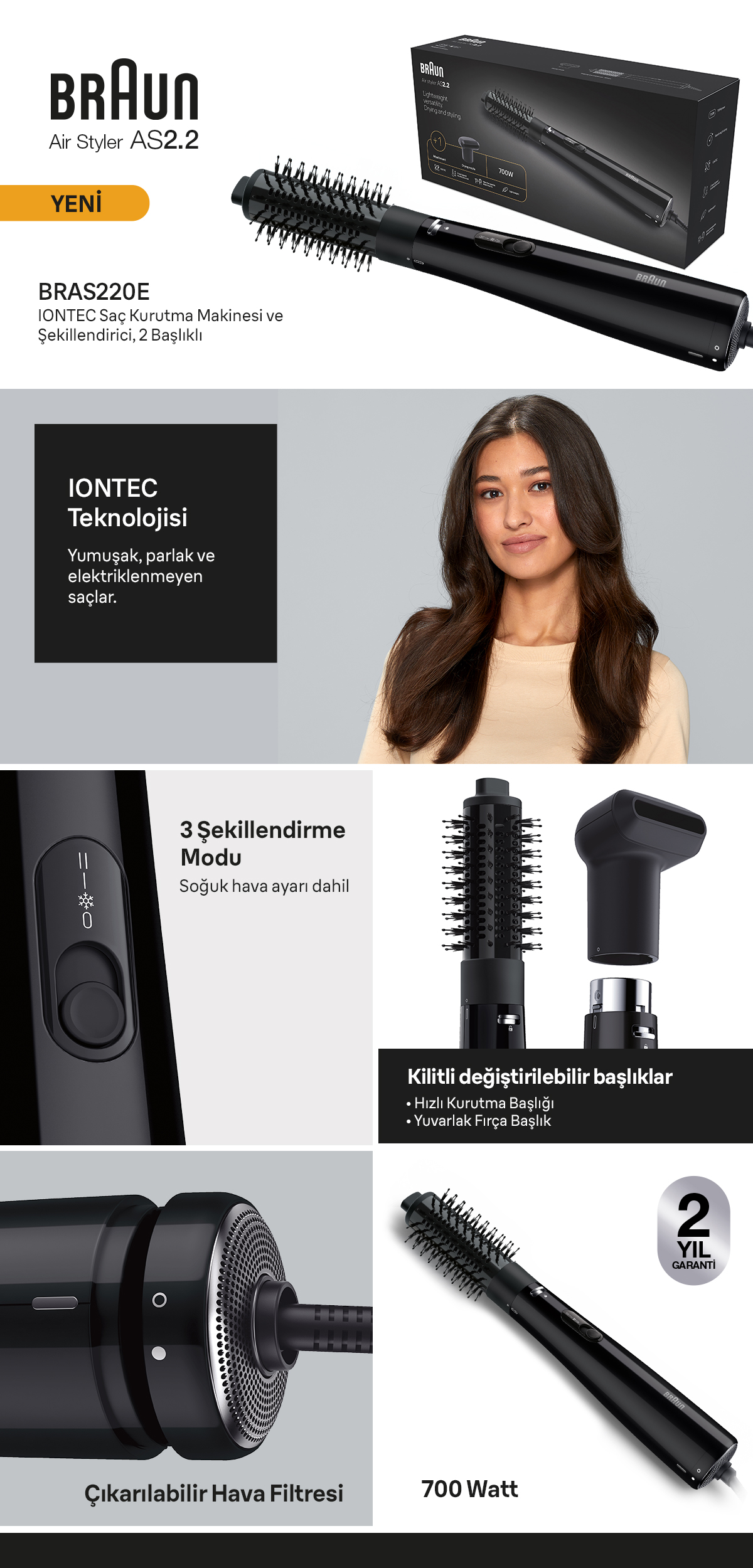 Braun BRAS220E Air Styler AS2.2 IONTEC Saç Kurutma Makinesi ve Şekillendirici, 2 Başlıklı