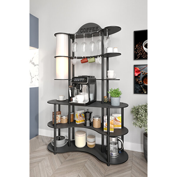 Brew-bliss Mutlu Kahve Köşesi̇-çok Amaçli Mutfak Rafi Si̇yah-lambader Aydinlatmali