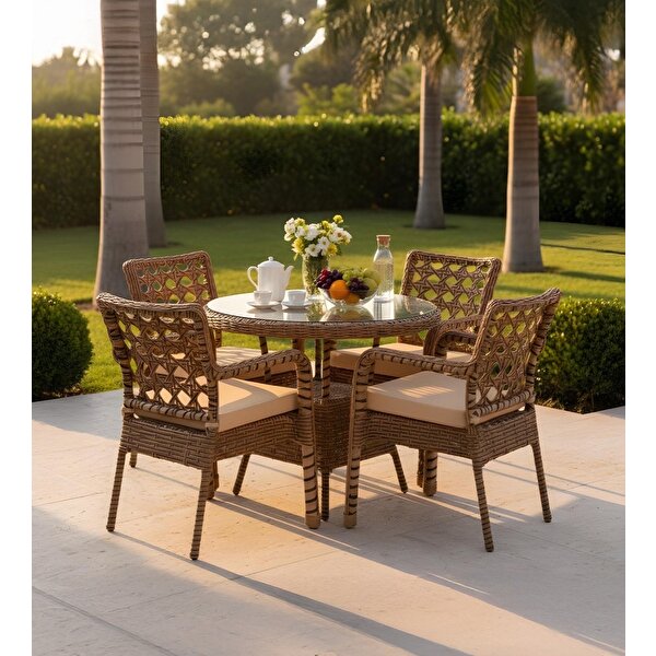 Btk Concept Alaçatı 4 Kişilik Rattan Bahçe Balkon Mutfak Masa Takımı Kahve