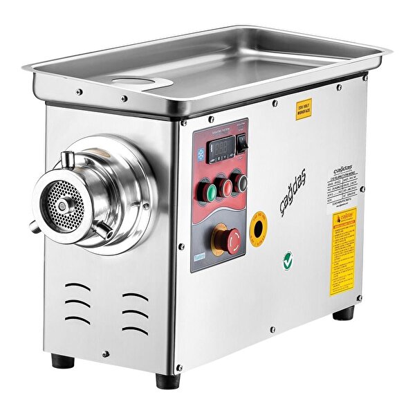 Çağdaş Endüstriyel 22 no’lu paslanmaz et kıyma makinesi, 380 V üç faz elektrikle beslenir ve entegre soğutma sistemi sayesinde uzun süre kesintisiz çalışır. Bu model, Soğutuculu Kıyma Makineleri segmentinde öne çıkar; her partide etin ideal sıcaklıkta kalmasını sağlayarak hem lezzet hem hijyen dengesi sunar.