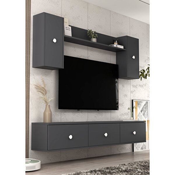 Cantek Dizayn 1356tv180-1ct Duvara Montaj Tv Sehpasi, Tv Üni̇tesi̇ ANTRASİT-BEYAZ Antrasit Beyaz