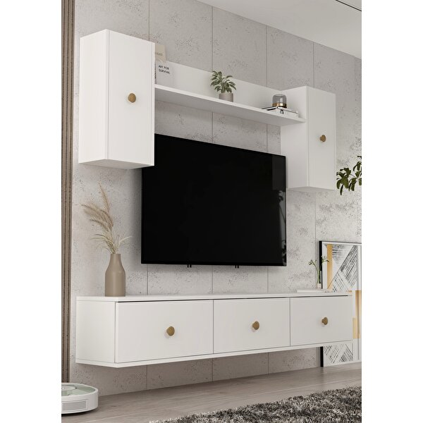 Cantek Dizayn 1356tv180-1ct Duvara Montaj Tv Sehpasi, Tv Üni̇tesi̇ BEYAZ-SAFİRMEŞE Beyaz-Safir Meşe