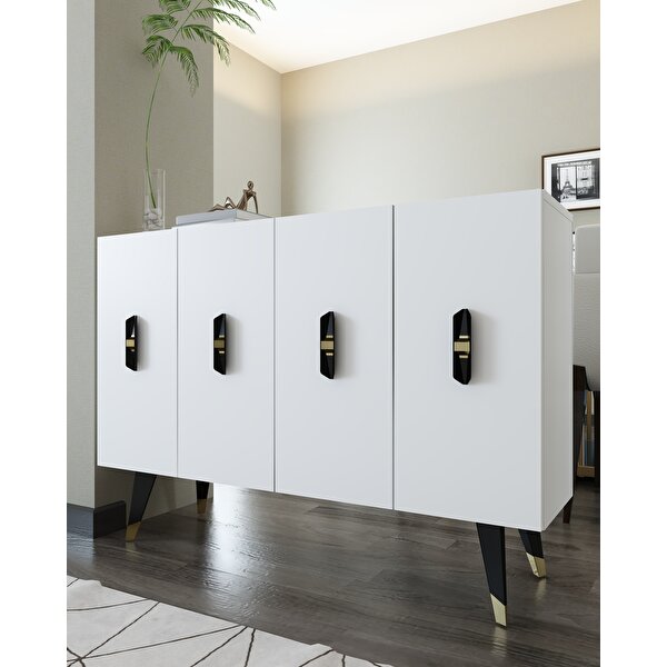 Cantek Dizayn 8170km-32dd Konsol,kahve Köşesi̇,ayakkabilik,ofi̇s Evrak Dolabi,mutfak Ki̇ler Dolabi,tv Üni̇tesi̇-BSA Beyaz-Altın