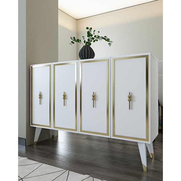 Cantek Dizayn 8172km-32ct Konsol,kahve Köşesi̇,ayakkabilik,ofi̇s Evrak Dolabi,mutfak Ki̇ler Dolabi,tv Üni̇tesi̇-BA Beyaz-Altın