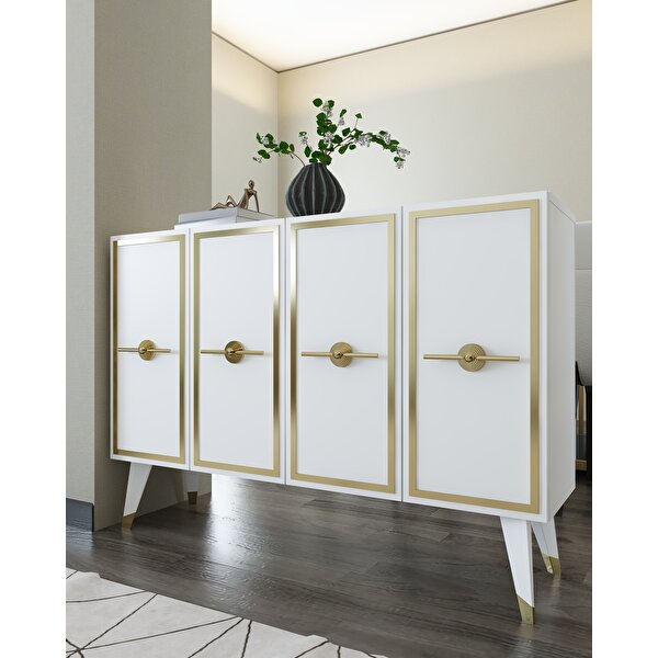 Cantek Dizayn 8174km-32ct Konsol,kahve Köşesi̇,ayakkabilik,ofi̇s Evrak Dolabi,mutfak Ki̇ler Dolabi,tv Üni̇tesi̇-BA Beyaz-Altın