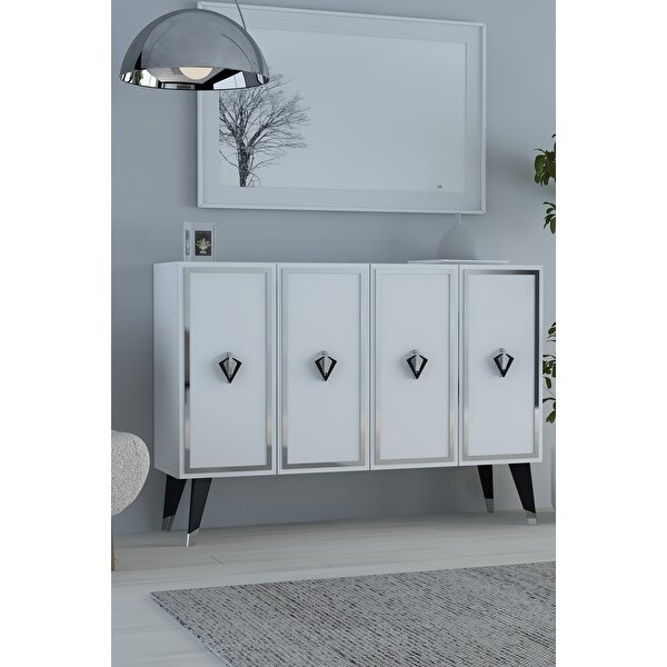 Cantek Dizayn 8176km-32ct Konsol,kahve Köşesi̇,ayakkabilik,ofi̇s Evrak Dolabi,mutfak Ki̇ler Dolabi,tv Üni̇tesi̇-BSG Beyaz-Gümüş
