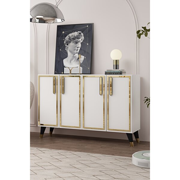 Cantek Dizayn 8194km-128ct Konsol,kahve Köşesi̇,ayakkabilik,ofi̇s Evrak Dolabi,mutfak Ki̇ler Dolabi,tv Üni̇tesi̇-beyaz-altın Beyaz-Altın