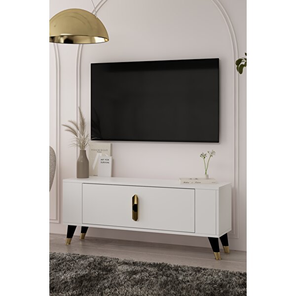 Cantek Dizayn Tv1368ct Retro-32 Tv Sehpasi BEYAZ-ALTIN-SİYAH Beyaz-Altın