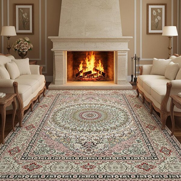 Zarif pembe tonları ve klasik İran motiflerini modern dijital baskı teknolojisiyle birleştiren bu halı, evinizde hem geleneksel hem de şık bir atmosfer oluşturur. Kaymaz tabanı sayesinde zemine sağlam tutunur ve güvenli kullanım sunar. Yıkanabilir yapısı sayesinde temizlikte büyük kolaylık sağlar, leke tutmaz özelliği ile uzun süre canlı ve yeni görünümünü korur. Antibakteriyel dokusu ise hijyenik bir kullanım deneyimi sunarak özellikle yoğun yaşam alanları için ideal hale getirir. Salon, oturma odası, yatak odası gibi tüm mekanlara uyum sağlayan şık ve dayanıklı bir seçenektir.
