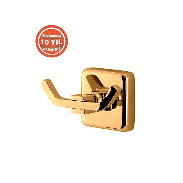 Çelik Banyo Paslanmaz Pirinç Çiftli Bornozluk Askılık Altın (10 Yıl Garantili)