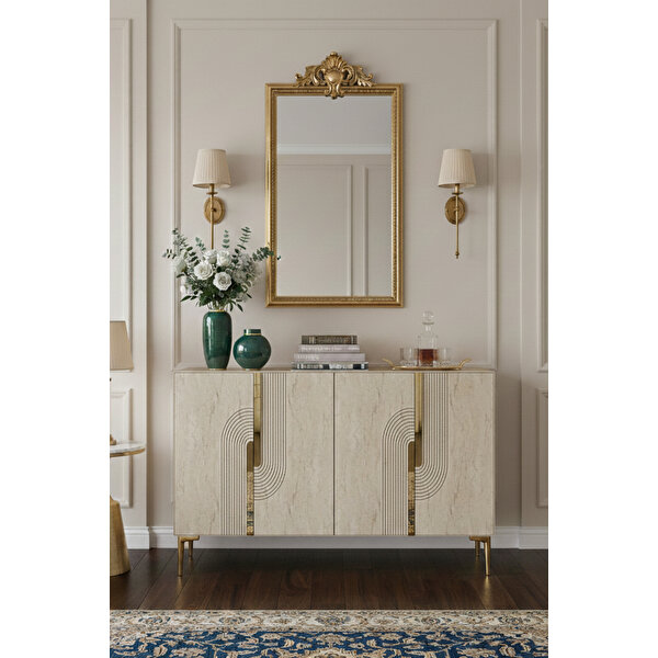 CENEYRA Ka1208btg Meyra120 Konsol, Kahve Köşesi̇ Ve Tv Sehpasi Beyaz-traverten Kapak-gold 120cm Beyaz-Traverten-Gold