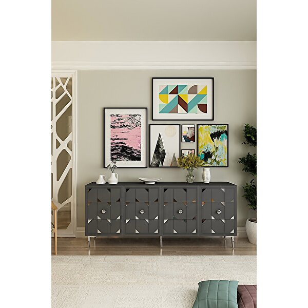 CENEYRA Ka1803as Moka180 Konsol, Kahve Köşesi̇, Tv Sehpasi Antrasi̇t-silver 180cm Antrasit Gümüş