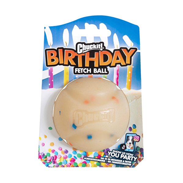 öpeğinizin oyun saatlerini renklendirin! Chuckit! Birthday Fetch Ball, doğum günü temalı renkli tasarımıyla oyunları daha eğlenceli hale getirir. Orta boy köpekler için özel olarak tasarlanmış dayanıklı top, fırlatma ve yakalama oyunları için idealdir. Chuckit! Birthday Fetch Ball ile köpeğinize en güzel doğum günü hediyesini verin.Doğum günü temalı ambalajı ve doğal kauçuk içerisinde bulunan eğlenceli konfeti dizaynı ile Chuckit Birthday sizlere güzel anılar yaşatacak ve köpeğinizin vazgeçemeyeceği bir hediye olacak. Tüm orta boy Chuckit fırlatıcılar ile uyumludur. 6.5cm çapında ve 105 gr ağırlığındadır.