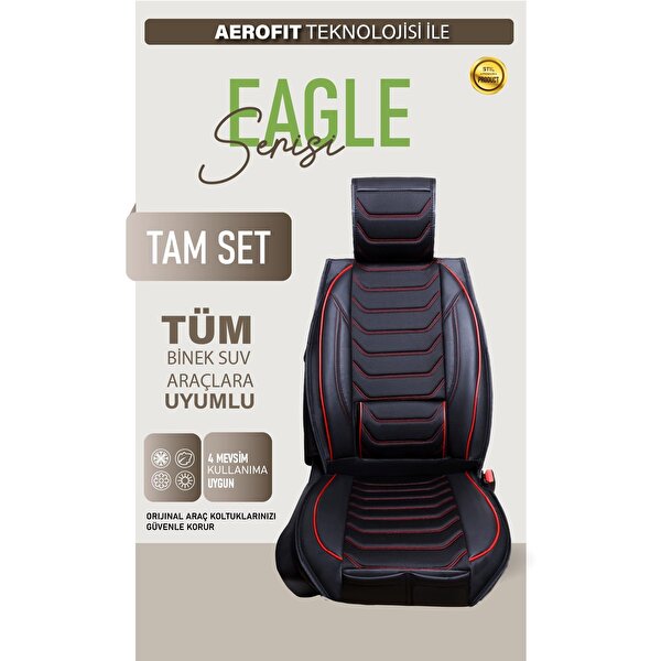 Citroen C5 Aircross Uyumlu Lüx Deri Oto Koltuk Kılıfı Ön Arka Takım Trend Serisi Si̇yah Kirmizi Siyah - Kırmızı