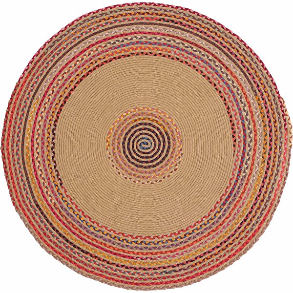 Cool Halı Luke 411 Renkli Yuvarlak Halı Bohem Örgü Hasır Kilim Dekoratif Mutfak Balkon Banyo Halısı 150x150 cm