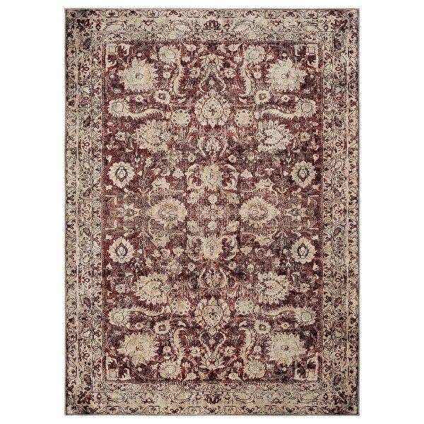 Cool Halı Private Bordo Eskitme Vintage Halı Etnik Desen Otantik Şönil Halı Yıkanabilir Salon Halısı 95x300 cm
