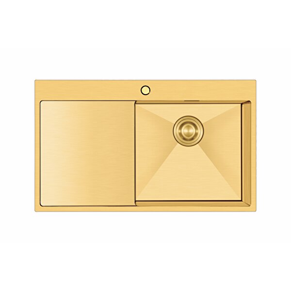 CRAUF Crauf 86 Cm X 51 Cm Via Lattea El Yapımı Sol Damlalıklı 304 Paslanmaz Çelik Eviye Altın