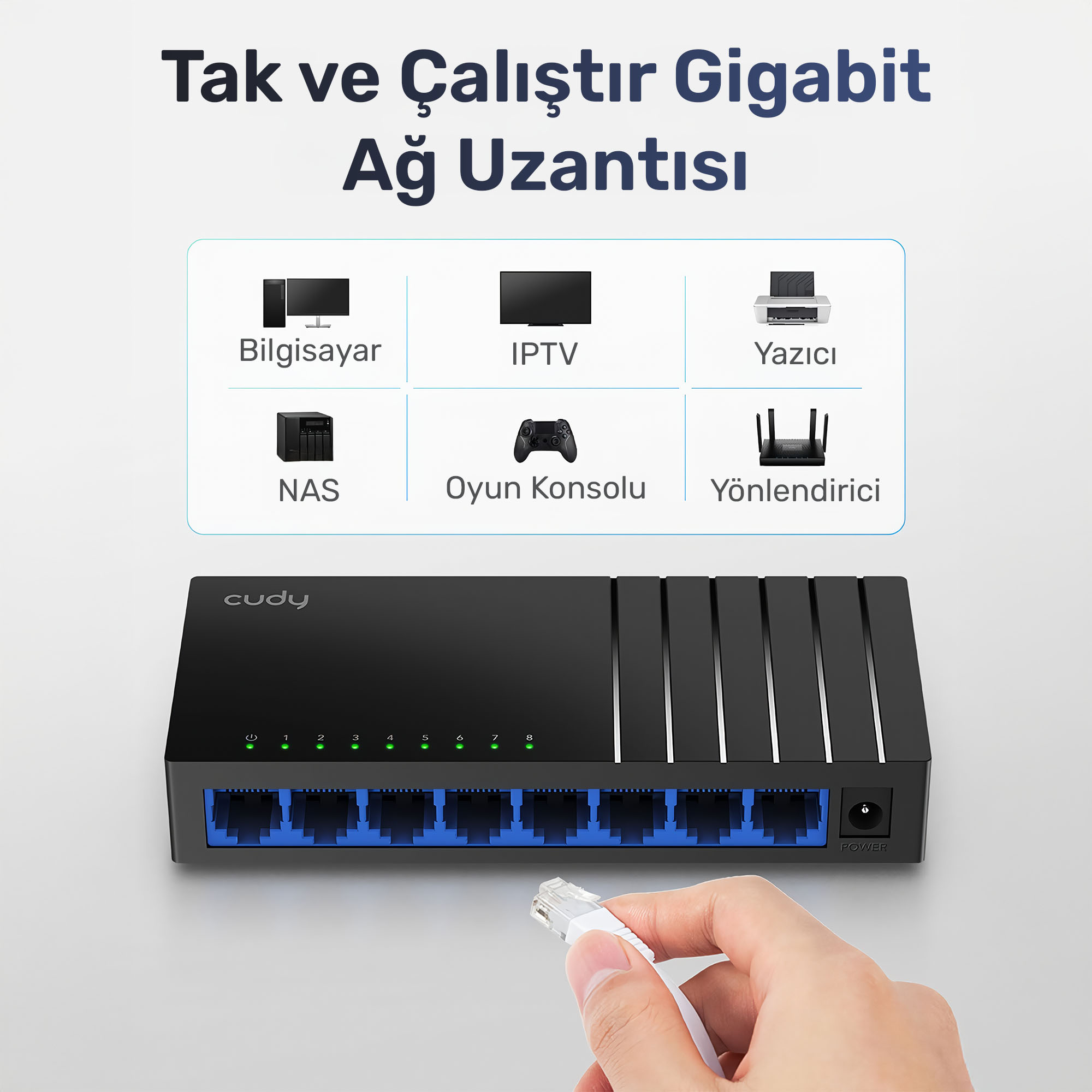 CUDY GS108D 8 PORT 10/100/1000 YONETILEMEZ DESKTOP SWITCH PLASTİK KASA