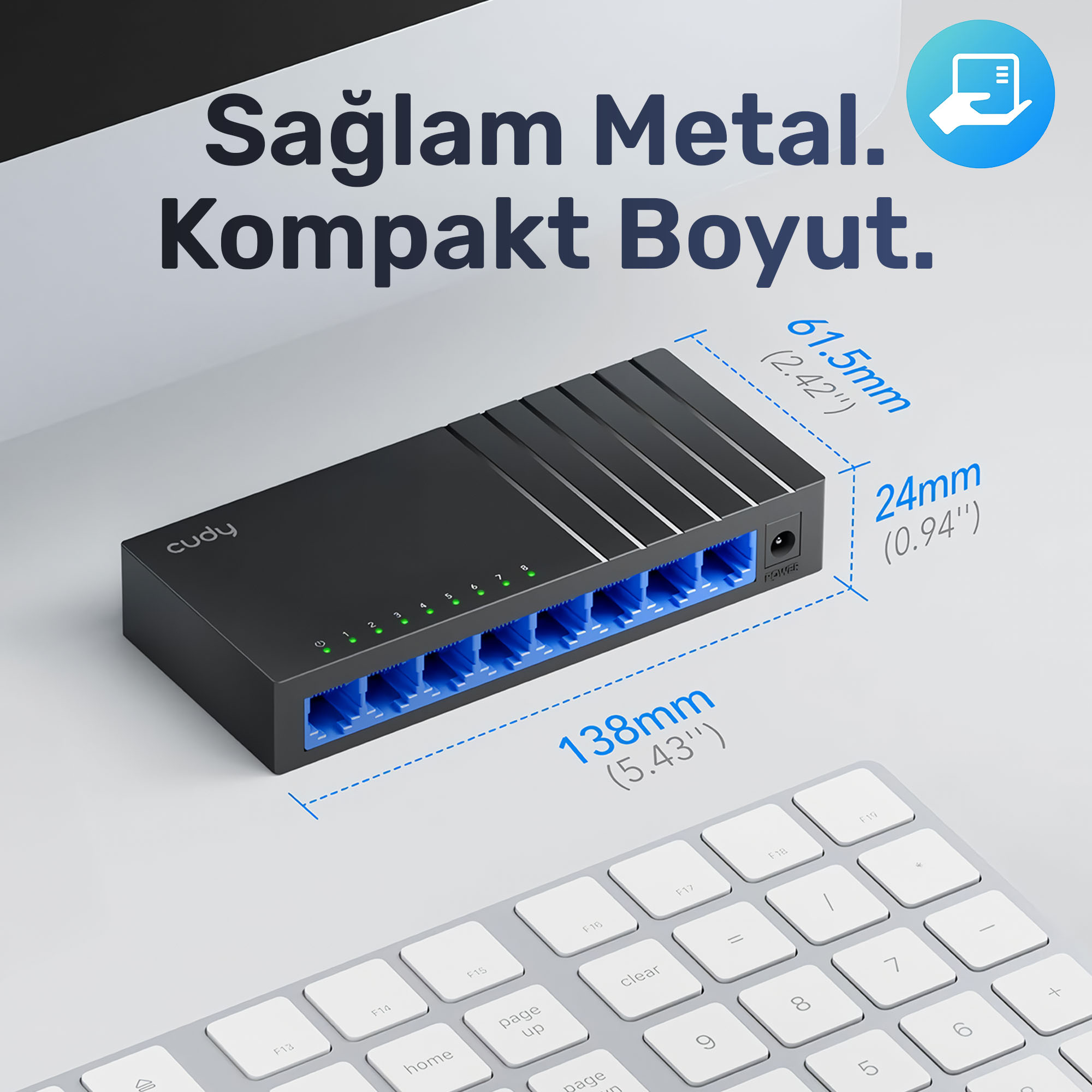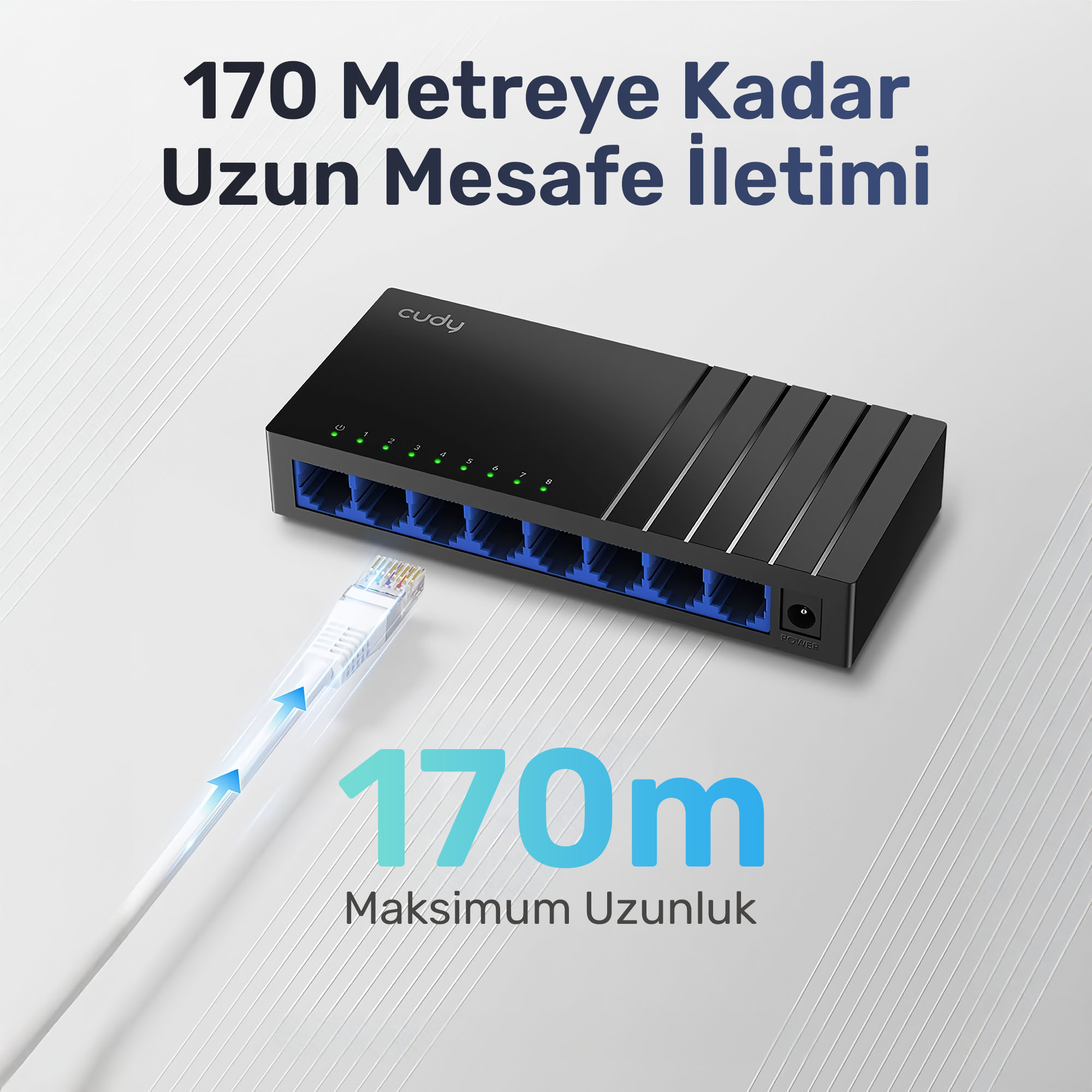 Cudy Switch, 8 cihaza kadar olan bağlantılarınızı yarı çift yönlü modda 1000Mbps (yarı çift yönlü) / 1000Mbps (tam çift yönlü) hızında sağlar. Bu size güçlü, sorunsuz, uygun maliyetli ve kullanımı kolay bir ağ deneyimi sunar. Multimedya, grafikler, HD video ve büyük veri transferi gerektiren diğer uygulamalar için idealdir.