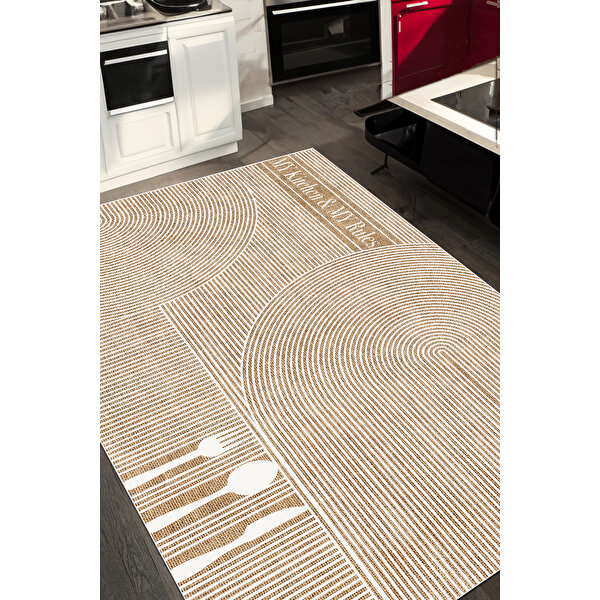 Decomia Home Dijital Kaymaz Yıkanabilir İskandinav Modern Geometrik Çizgili Kitchen Mutfak Halısı 100x200 cm
