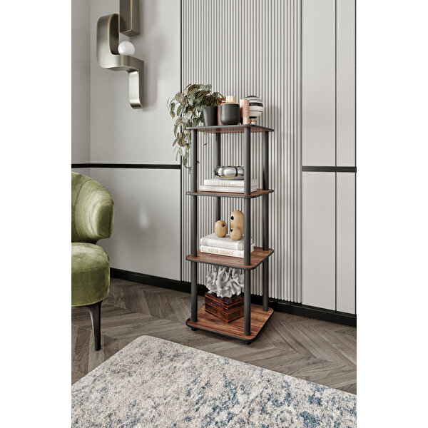 Dekoratif Masi̇vo Ki̇taplik 4 Katlı 34x34 Dikdörtgen Çok Amaçlı Raf Madran Cevi̇z