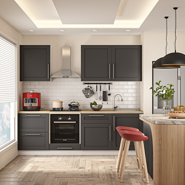 Dekorex Pia Antrasit Serisi 240 Cm Fırın Ve Çekmece Modüllü Meşe Tezgahlı Hazır Mutfak Pa-240dav-c-mt 240 cm