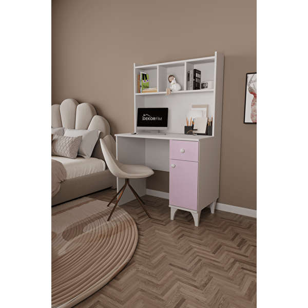DF09107B Beyaz Çalışma Masası ve DF09107KP Beyaz Üzeri Pembe Kapaklı Çalışma Masası, hem estetik hem de işlevsellik düşünülerek tasarlanmıştır. Çocuk odası, genç odası veya evde şık bir çalışma alanı oluşturmak isteyenler için ideal bir seçimdir.