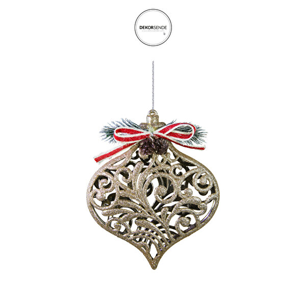 Yılbaşı Temalı Şampanya Renk Kıvrımlı Desenli Damla Model Süs 18 cm