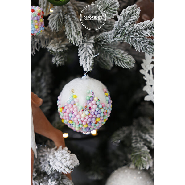 • Canlı Renkler: Pastel tonlardaki boncuklar, yılbaşı dekorasyonunuza tatlı bir enerji ve renk cümbüşü katarken, beyaz kar efektiyle kontrast oluşturur.