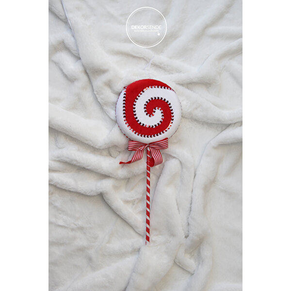 Dekorsende Yılbaşı Lolipop Süsü Dikişli Kırmızı Beyaz 40 cm