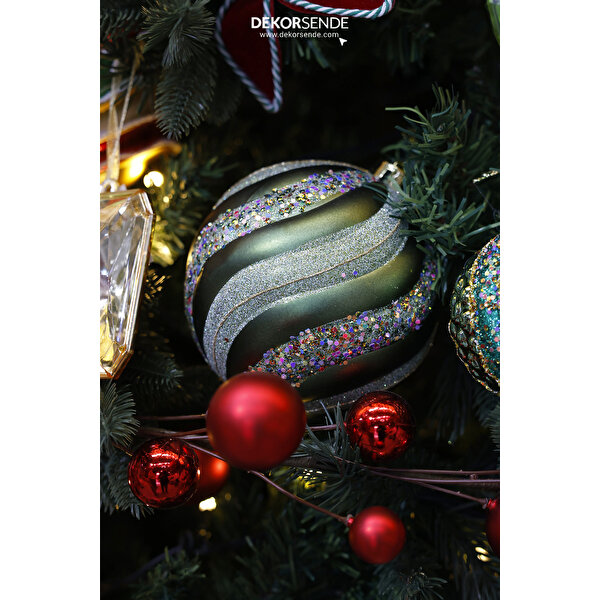 Dekorsende Yılbaşı Süsü Dönence Şekerli Top Yeşil 15 Cm