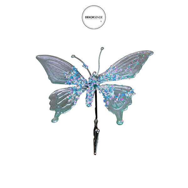 Dekorsende markamızın özel tasarım yılbaşı koleksiyonundan, bu pırıltılı kelebek süs ile yılbaşı ağacınıza ve dekorasyonunuza zarif bir dokunuş katın! 18 cm genişliğindeki bu estetik kelebek süs, gümüş rengi ve üzerindeki mavi-mor parıltılı simlerle adeta bir peri masalı atmosferi yaratır. Kelebek kanatlarındaki şeffaf yapı, ışığı yansıtarak göz alıcı bir parlaklık sunar.