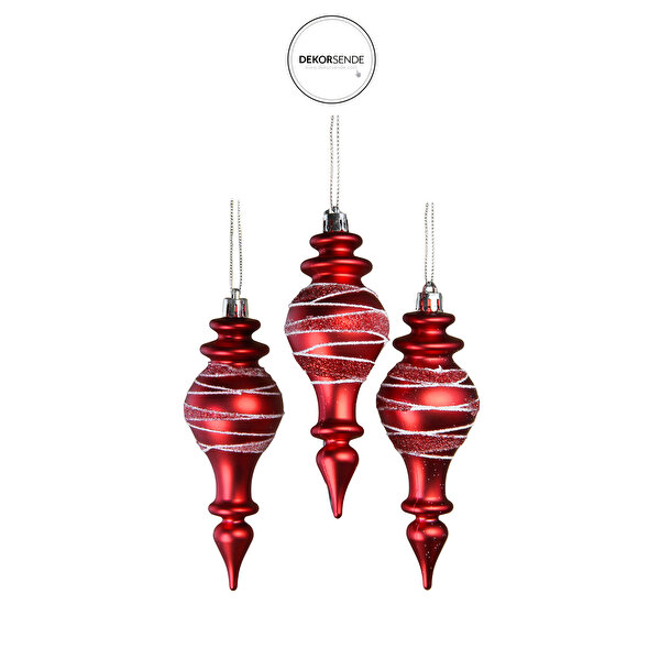 Yılbaşı Süsü Lüks Simli Fırıldak 3'lü Set Kırmızı Beyaz 14 cm