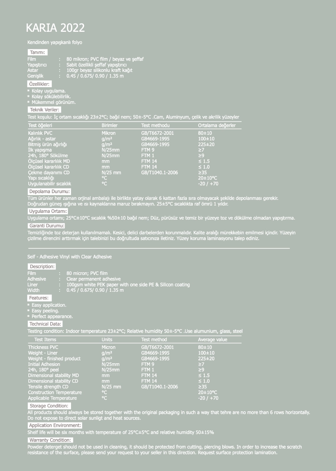 Demeya cam serisi vitray görünümlü kendinden yapışkanlı cam kaplama folyosu • pvc filmdir. • yapıştırıcısı : sabit özellikli, şeffaf yapıştırıcı. • 100 gr beyaz silikonlu kraft kağıt. • kolay uygulanabilir. • kolay sökülebilir, iz bırakmaz. • mükemmel görünüm. • direkt su ile temas etmeyen yüzeylerde kullanılabilir. (duşakabinin iç yüzeyinde kullanılması tavsiye edilmez. Duşakabinin dış yüzeyinde kullanılabilir.) • dışarıdan içerisini, içeriden dışarısını göstermez.