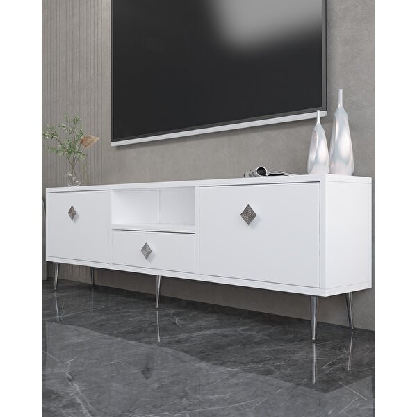 Demonte Dekor 1308dropdd-1 Tv Sehpasi BEYAZ-GÜMÜŞ KULP Beyaz-Gümüş