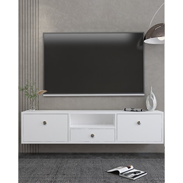Demonte Home 1301dropdh-1 Duvara Montaj Tv Sehpasi BEYAZ-GÜMÜŞ KULP Beyaz-Gümüş