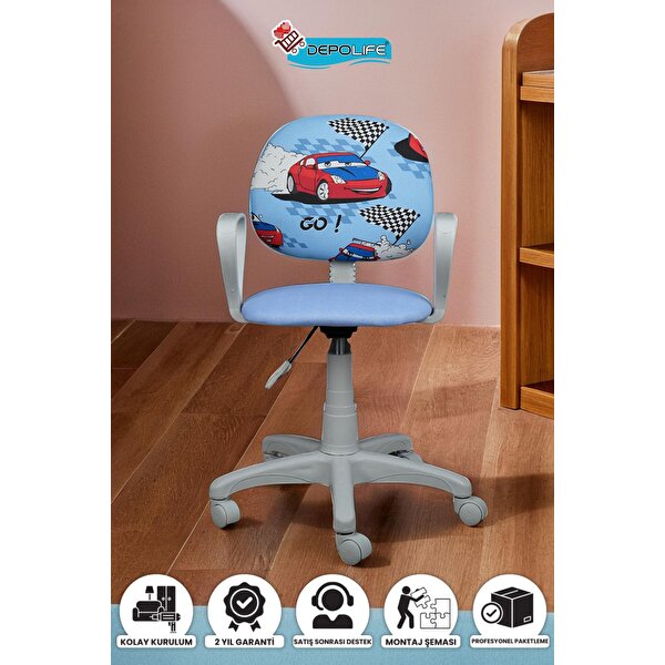 Depolife Çocuk Odası Sandalyesi Ders Çalışma Ofis Koltuğu Öğrenci Sandalye Beyaz Tekerli Yükseklik Ayarlı