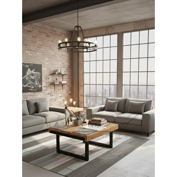 Modern ve endüstriyel tarzda tasarlanan ahşap sehpamız, metal ayaklarıyla