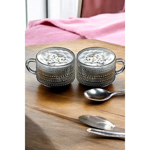 Devigo 2'li Lüks Kristal Cam Bardak Seti Kulplu Magnolya Tatlı Kasesi Tatlılık Kase Kupa 410ml