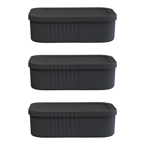 3 Adet 3 Litre Çok Amaçlı Kapaklı Saklama Kutusu Seti - Makyaj, Kozmetik Kişisel Eşya Düzenleyici, Antrasit