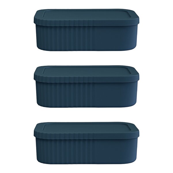 Devigo 3 Adet 3 Litre Çok Amaçlı Kapaklı Saklama Kutusu Seti - Makyaj, Kozmetik Kişisel Eşya Düzenleyici, Mavi