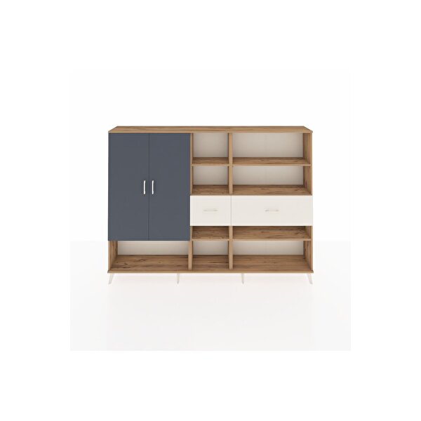 Dienni Mobilya Arges Dolap 10 Raflı 2 Çekmeceli 2 Kapaklı 220x30x163 Çam-antrasit/aytaşı