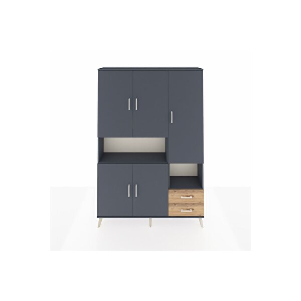 Arges Dolap 10 Raflı 2 Çekmeceli 5 Kapaklı 132x30x195 Antrasit-Antrasit/Çam