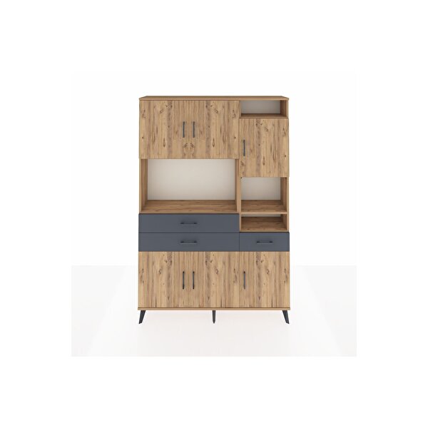 Arges Dolap 10 Raflı 3 Çekmeceli 6 Kapaklı 132x30x195 Çam-Çam/Antrasit