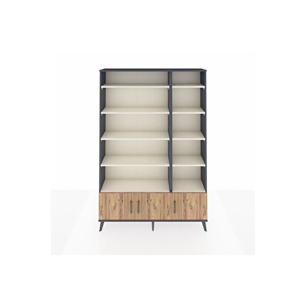 Arges Dolap 10 Raflı 3 Kapaklı 132x30x195 Antrasit-Çam/Aytaşı